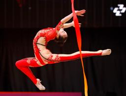 新体操の世界選手権第2日は28日、北九州市の西日本総合展示場で個人予選後半のクラブとリボンが行われ、全4種目のうち得点の高い3種目合計で争われた個人総合はともに東京五輪代表の喜田純鈴(エンジェルRG・カガワ日中)が74・000点で8位、大岩千未来(イオン)が67・350点で18位に入り、上位18人による30日の決勝に進出した。