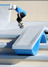 ストリートリーグ第2戦の女子予選を突破した西矢椛の試技=レークハバスシティー(ゲッティ=共同)