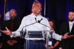 任期は来年1月から4年間。デブラシオ氏の2期8年に続き、民主党が人口830万人超を擁する米最大都市の市政を担う。市条例の多選禁止規定により、デブラシオ氏は今年末に退任する。