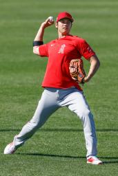 キャッチボールするエンゼルス・大谷=テンピ(共同)